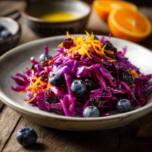 7. Rödkålssallad med blåbär, russin och apelsinzest